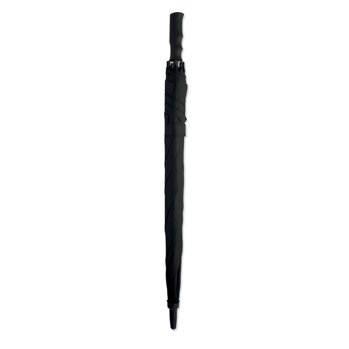 23palcový větruodolný čtvercový deštník s automatickým otevíráním z polyesteru 190T pongee. Tyč a žebra ze sklolaminátu a rukojeť z ABS s gumovou povrchovou úpravou.