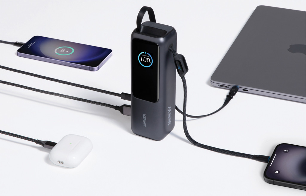 Anker powerbanka 25 000 mAh 165 W so zabud. zasúvacím káblom sivá