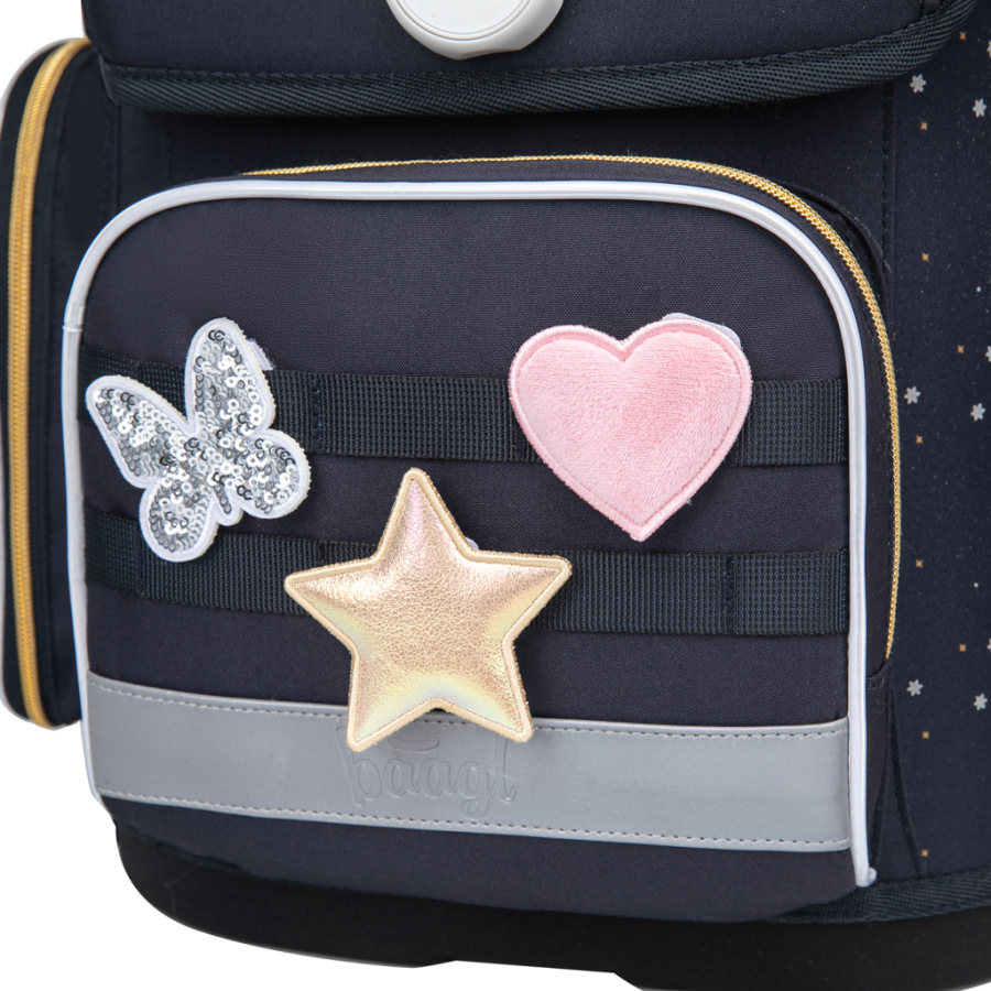 • Jedinečný systém vymeniteľných odznakov umožňuje prispôsobiť vzhľad aktovky nálade a záujmom dieťaťa.