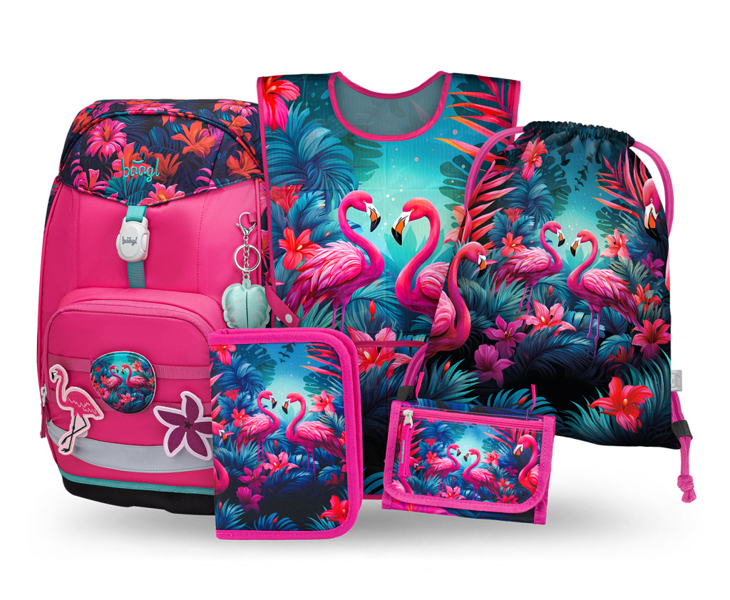 BAAGL SADA 5 Airy Plus Plameniaky: batoh, peračník, vrecko, zástera, peňaženka