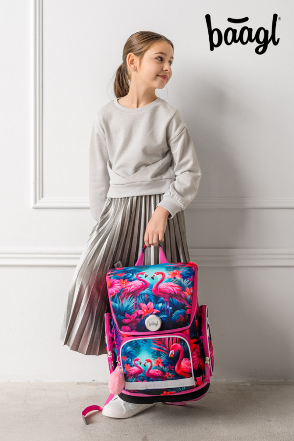 BAAGL SADA 5 Ergo Plameniaky: aktovka, peračník, vrecko, zástera, peňaženka