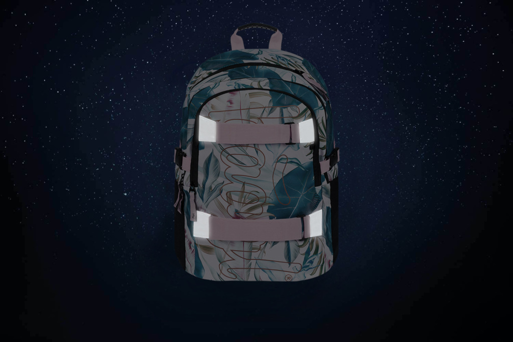 • Na prednej komore batoha sú umiestnené dva popruhy na prichytenie skateboardu.