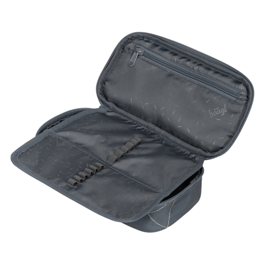• Kompaktný peračník na zips s priestrannou hlavnou priehradkou a dvojitou chlopňou ponúka dostatok miesta na písacie potreby a drobnosti.