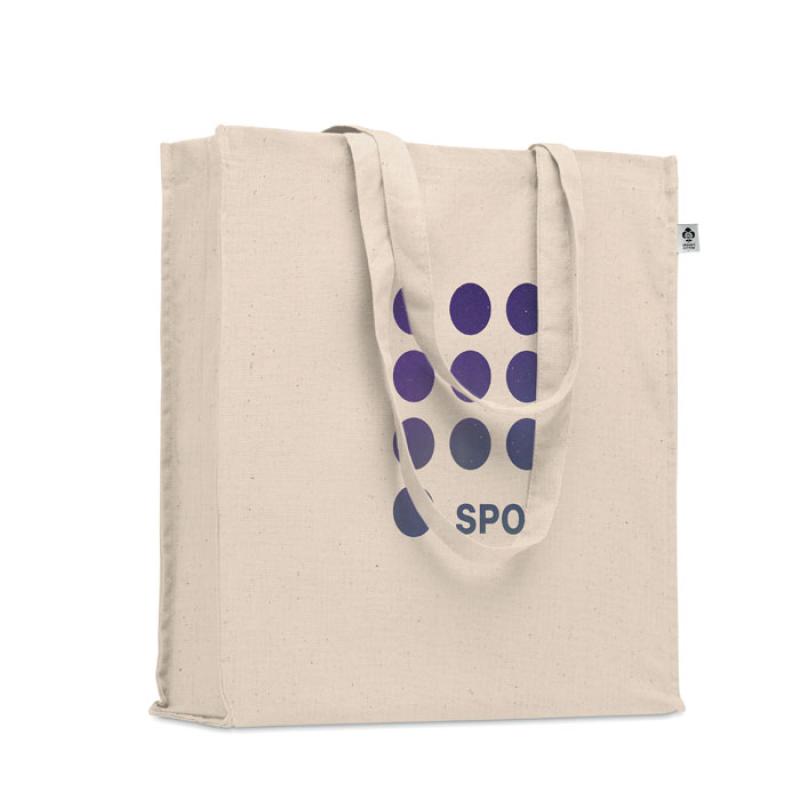 Nákupní taška z organické bavlny s dlouhými uchy a klínem. 220 g/m².