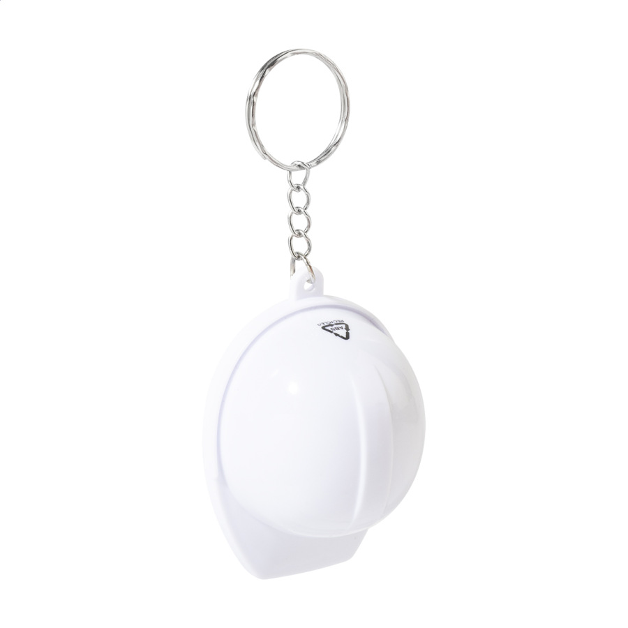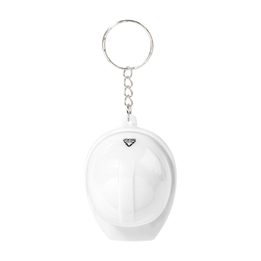 Prívesok na kľúče v tvare bezpečnostnej prilby z recyklovaného ABS materiálu s otváračom na fľaše.