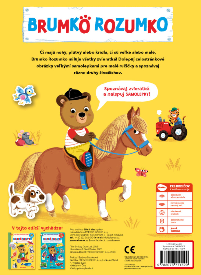 Poďte objavovať svet spolu s Brumkom! Táto knižka veľkých samolepiek pre malé rúčky deti určite očarí. Milý macko ich prevedie svetom zvierat a s množstvom z nich ich aj bližšie zoznámi… Či už to má nohy, plutvy alebo krídla, je to veľké či malé, Brumko Rozumko sa vo svete živočíchov skrátka vyzná! Deti sa s ním vydajú na úžasnú cestu za poznaním a zoznámia sa s rôznymi druhmi zvieratiek.