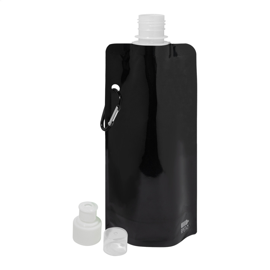 Skladacia športová fľaša z RPET s viečkom na pitie a hliníkovou karabínou, 500 ml. Bez BPA. Nevhodná pre sýtené nápoje.