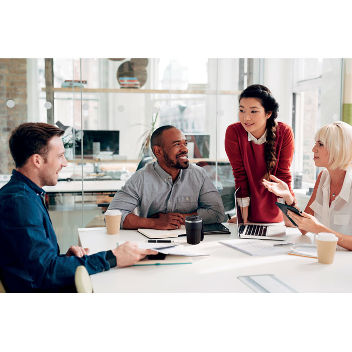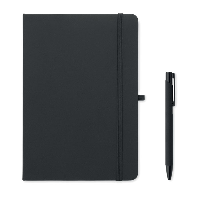 Zápisník A5, kuličkové pero z recyklovaného hliníku a 350 ml termohrnek s PP víčkem a poutkem v dárkové krabičce.
