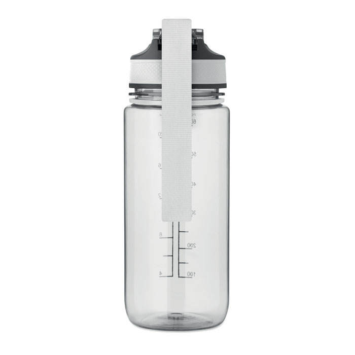 Motivační sportovní láhev na vodu z RPET s integrovaným brčkem, měkkým silikonovým náustkem, víčkem otevíratelným jednou rukou a bezpečnostním zámkem. Poutko z RPET saténu. Objem 700 ml. Neteče.