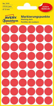 Etikety, okrúhle, priemer: 12 mm, AVERY ZWECKFORM, červené, 270 etikiet/bal