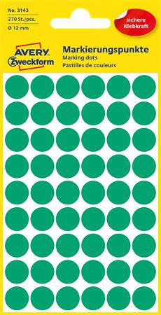 Etikety, okrúhle, priemer: 12 mm, AVERY ZWECKFORM, zelené, 270 etikiet/bal