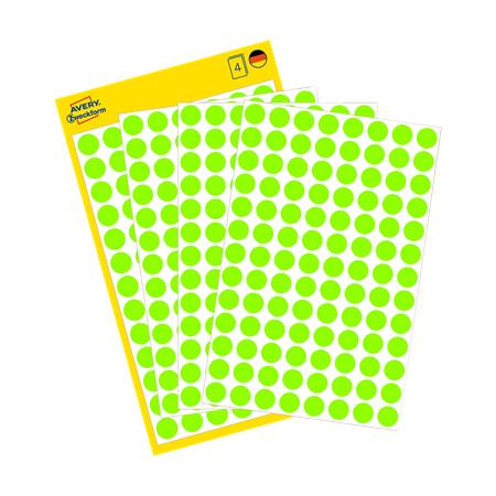 Etikety, okrúhle, priemer: 8 mm, AVERY ZWECKFORM, neónovo zelené, 416 etikiet/bal