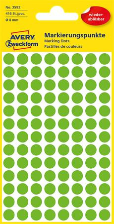 Etikety, okrúhle, priemer: 8 mm, odstrániteľné, AVERY ZWECKFORM, zelené, 416 etikiet/bal