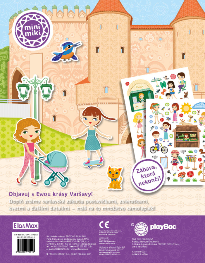 Obľúbená séria minimiky prichádza s ďalšou novinkou v podobe zábavnej samolepkovej knižky, v ktorej budú deti spolu s bábikou Ewou a jej kamarátkami Agnieszkou a Olgou objavovať najznámejšie miesta poľskej metropoly Varšavy. Tamojšie scenérie môžu dopĺňať množstvom krásnych, opakovane použiteľných samolepiek podľa vlastnej fantázie a v knižke nájdu aj plno zaujímavých informácií o varšavských pamiatkach, významných miestach, ale aj o poľskej kultúre.