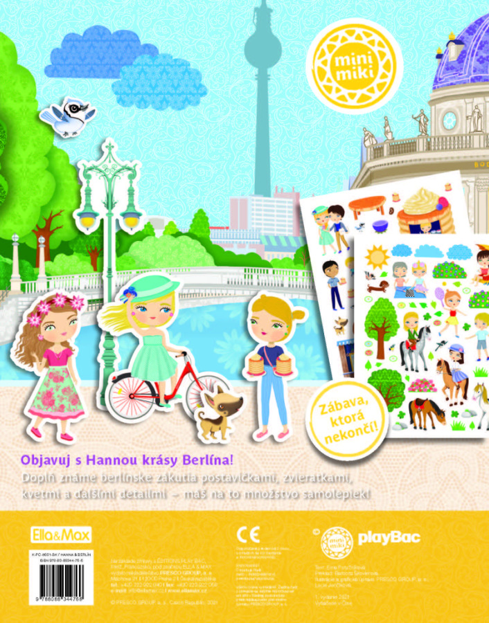 Obľúbená séria minimiki prichádza s ďalšou novinkou v podobe zábavnej samolepkovej knižky, v ktorej budú deti spoločne s bábikou Hannou a jej kamarátkami Else a Steffi objavovať najznámejšie kúty nemeckého hlavného mesta Berlína, jednej z najkrajších európskych metropol. Známe berlínske scenérie môžu dopĺňať množstvom krásnych samolepiek podľa vlastnej fantázie a v knižke nájdu nielen mnoho zaujímavých informácií o tunajších pamiatkach, ale aj napríklad o histórii tohto mesta.