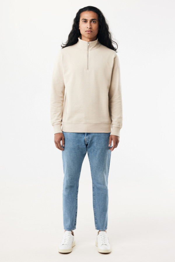 IQONIQ Elgon sveter s krátkym zipsom z recyklovanej bavlny desert XL