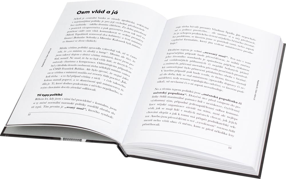 Táto kniha prišla na svet v priebehu autorovej „postguvernérskej veľkej dovolenky“ a pripomína dôležité udalosti a významné osobnosti ekonomického, politického a spoločenského sveta ostatných tridsiatich rokov. Ponúka okrem iného guvernérov pohľad na troch českých prezidentov, väčšinu ponovembrových premiérov či hviezdy svetového a domáceho bankového neba. Popri tom Miroslav Singer píše otvorene o svojom súkromí: o obľúbenej hudbe, vzťahu k vínu alebo o tom, ako bojuje s nadváhou. Vo zvláštnej kapitole vysvetľuje, prečo centrálna banka pod jeho vedením pristúpila k oslabeniu národnej meny.