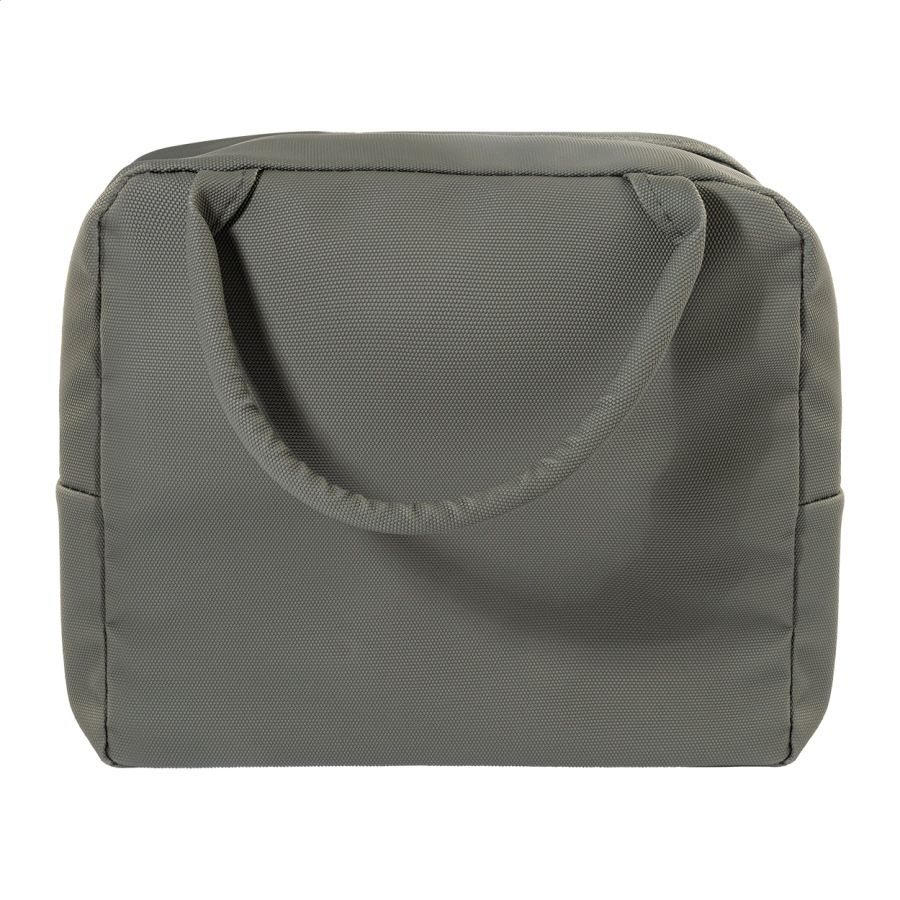 Chladiaca taška na zips z mäkkej recyklovanej PU kože s predným vreckom a hliníkovým polstrovaním. S charakteristickým štítkom z recyklovanej PU kože.