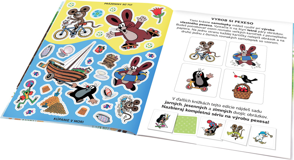 Kto by nepoznal krtka – najmilšieho kresleného rozprávkového hrdinu na svete? Vydajte sa spolu s ním objavovať čaro ročných období na krásnych obrázkoch geniálneho výtvarníka Zdeňka Milera! Dvojstránkové scenérie môžu deti dolepovať množstvom pôvabných samolepiek, či už podľa zadania, alebo podľa vlastnej fantázie. V knižke sa okrem toho dozvedia veľa nového a zaujímavého o lete a pomocou samolepiek si môžu vyzdobiť vlastný obrázok, izbičku alebo vyrobiť pexeso!