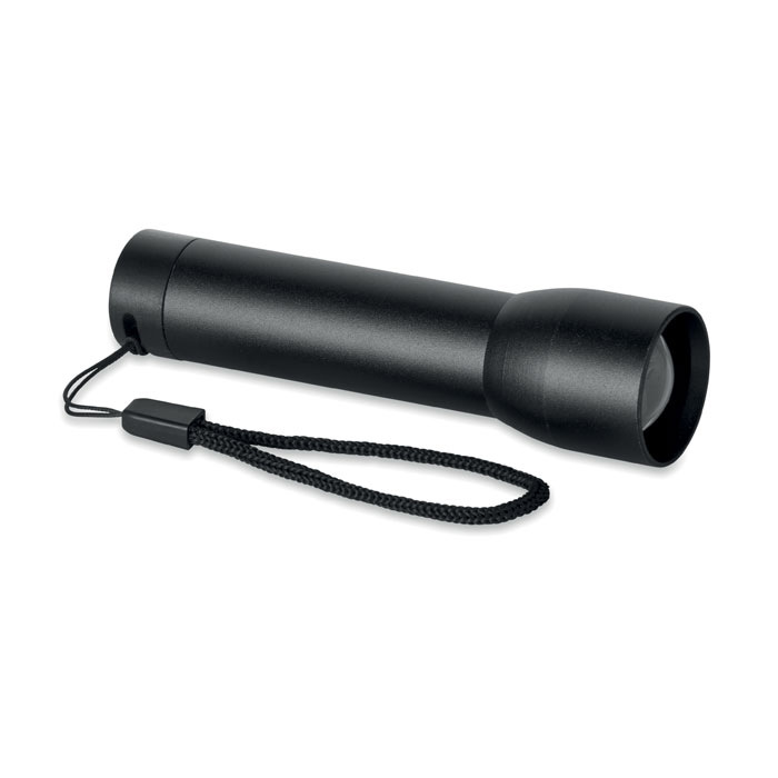 Dobíjecí svítilna z recyklovaného hliníku s několika nastaveními světla a zoom funkcí. Vyměnitelná lithiová baterie 14500. Výkonná a odolná pro každodenní použití.