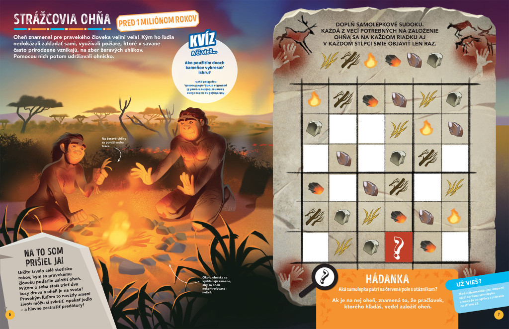 Vydajte sa na dobrodružnú misiu s krycím názvom PRAVEK! Akadémia záhad, ktorá rieši hádanky staré stovky, tisíce, ba milióny rokov, má pre vás poriadnu výzvu. Vedci objavili kostru, ktorá podľa prvých výsledkov bádania patrila jednému z pradávnych predkov dnešného človeka. Pokračujte v archeologickom prieskume, identifikujte stopy zanechané pravekými ľuďmi, zbierajte indície… Len ak sa úspešne popasujete so všetkými rébusmi, kvízmi a úlohami, zistíte, komu nájdené kosti patrili! Pri riešení zadaní sa dozviete mnoho pútavých informácií a zaujímavostí z histórie. Pomôžu vám aj samolepky, ktorých tu nájdete vyše 150!