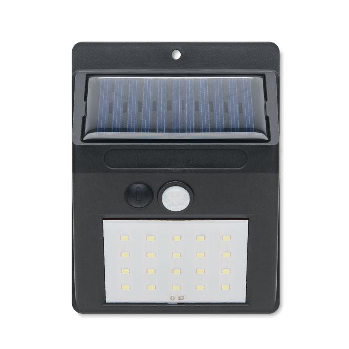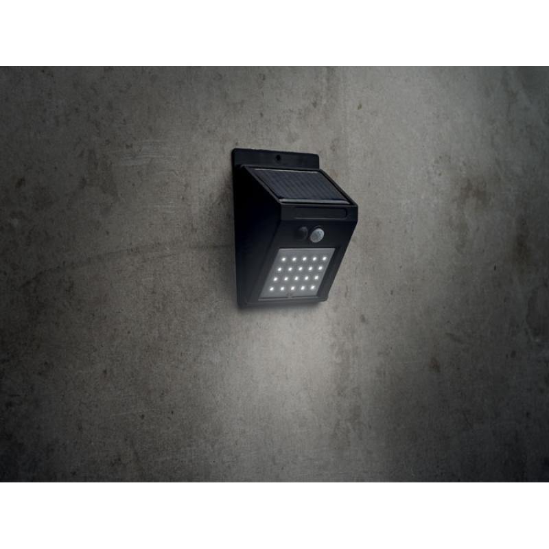 Solární 20 LED světlo z PP se senzory pohybu a s nočním osvětlením. PIR (pasivní infračervený) senzor pohybu. Noční senzor CDS. Stupeň ochrany: IP 44. Kapacita baterie: 800 mAh.