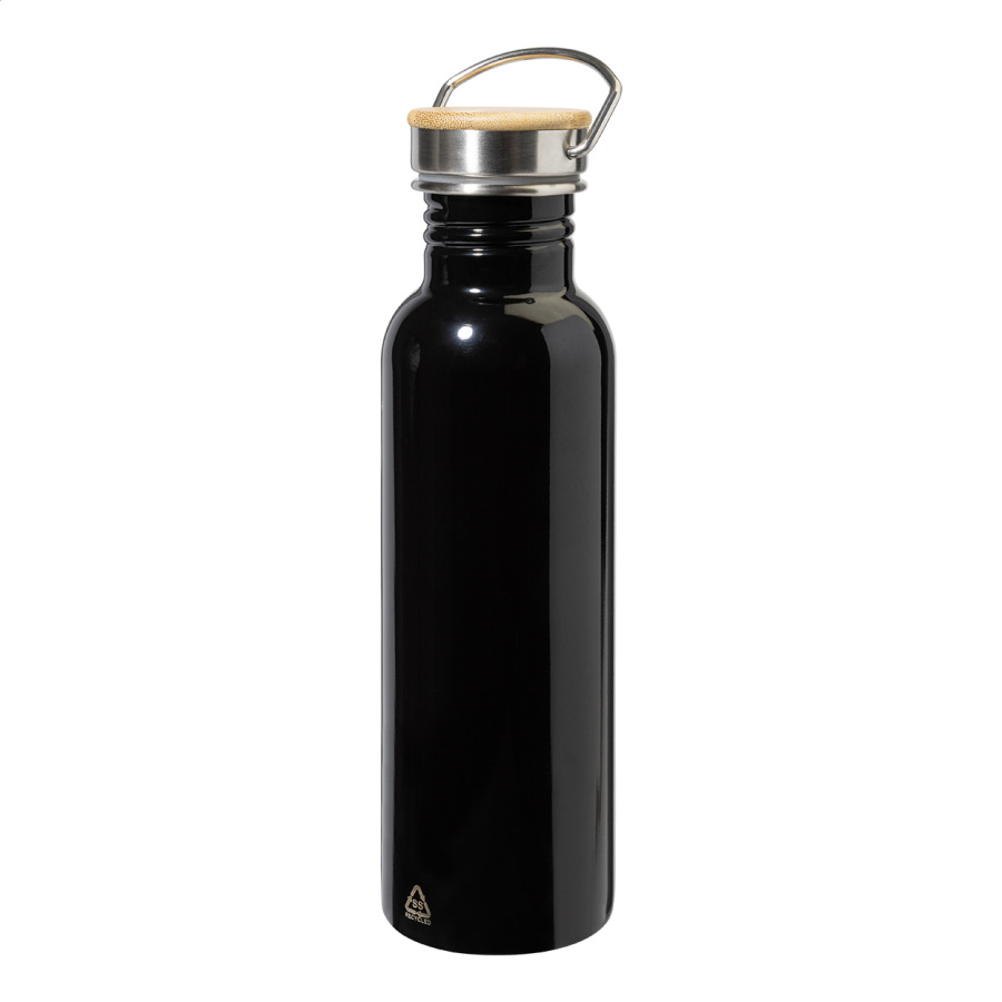 Fľaša z recyklovanej nerezovej ocele s bambusovým viečkom, 750 ml.