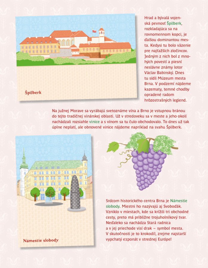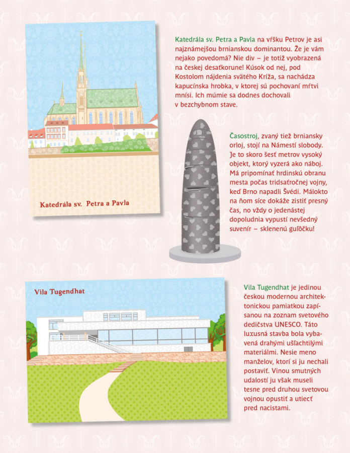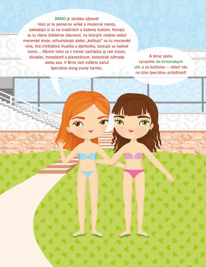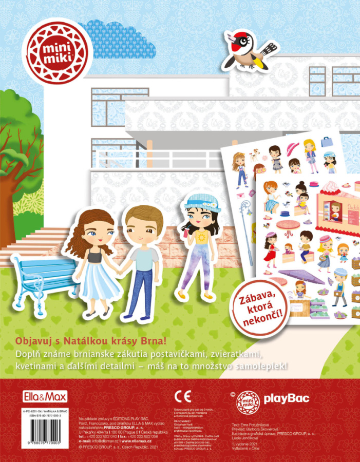 Obľúbená séria minimiky prichádza s ďalšou novinkou v podobe zábavnej samolepkovej knižky, v ktorej budú deti spolu s bábikou Natálkou a jej kamarátkami Nelou a Veronikou objavovať najznámejšie kúty moravskej metropoly, Brna. Brnianske scenérie môžu dopĺňať množstvom krásnych, opakovane použiteľných samolepiek podľa vlastnej fantázie a v knižke nájdu aj mnoho zaujímavých informácií o tunajších pamiatkach, známych miestach, ale aj napríklad o zvláštnostiach moravského regiónu.