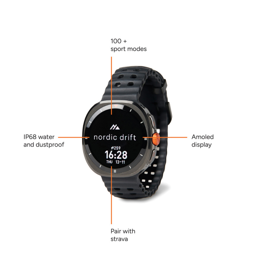 Navrhnuté pre výdrž, stvorené pre dobrodružstvo. Outdoorové hodinky Nordic Drift Performance sú určené na šport, dobrodružstvo aj každodenné nosenie. Majú ľahké a odolné puzdro zo zinkovej zliatiny, pohodlný silikónový remienok na celodenné nosenie a prémiový AMOLED displej s jasnejším, čistejším obrazom a výbornou čitateľnosťou vonku. Hodinky sú bez PVC a majú krytie IP68 proti prachu a vode, takže zvládnu aj náročné podmienky. Výdrž batérie je až 7 dní na jedno nabitie a až 28 dní v pohotovostnom režime. Po pripojení k aplikácii pre Android a iOS podporujú základné funkcie vrátane merania srdcového tepu, sledovania kalórií, športových režimov a notifikácií hovorov a správ. Všetky produkty Nordic Drift sú intenzívne testované na kvalitu. Keďže pevne veríme vo výkon a odolnosť našej výbavy, každý výrobok je krytý 5-ročnou zárukou na výrobné chyby.