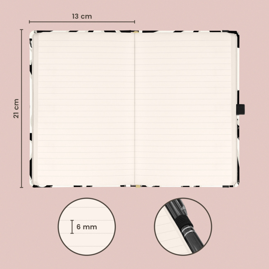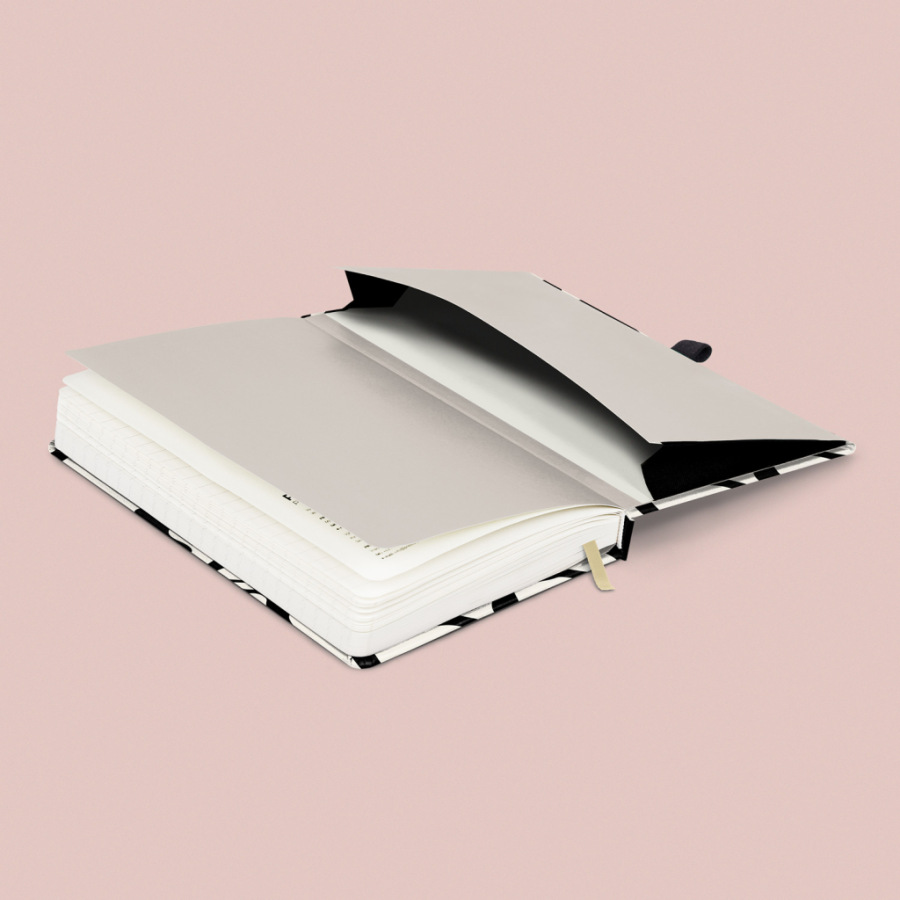 Kvalitný linajkový notes v pevných doskách s uzatváraním na gumičku, pútkom na ceruzku a vnútorným vreckom na drobnosti. Vo vnútri nájdete 172 bodkovaných strán na žltom papieri na zapisovanie všetkých vašich nápadov. Linajkový zápisník môžete použiť ako denník, na zapisovanie hlbokých myšlienok alebo pracovných poznámok.