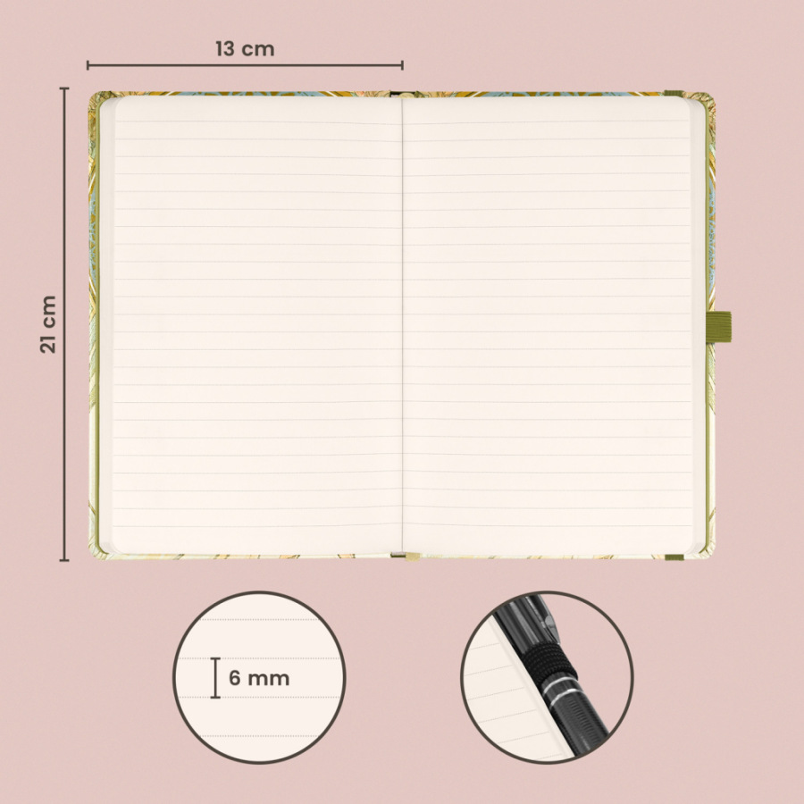 Kvalitný linajkový notes v pevných doskách s uzatváraním na gumičku, pútkom na ceruzku a vnútorným vreckom na drobnosti. Vo vnútri nájdete 172 bodkovaných strán na žltom papieri na zapisovanie všetkých vašich nápadov. Linajkový zápisník môžete použiť ako denník, na zapisovanie hlbokých myšlienok alebo pracovných poznámok.