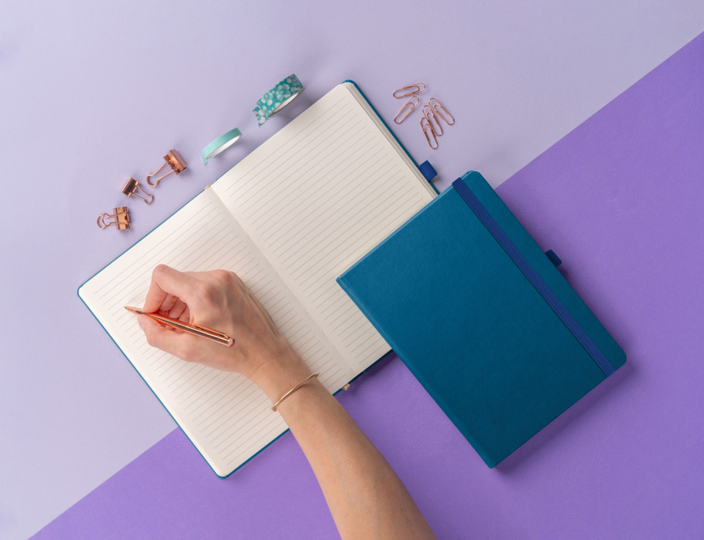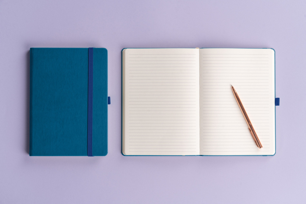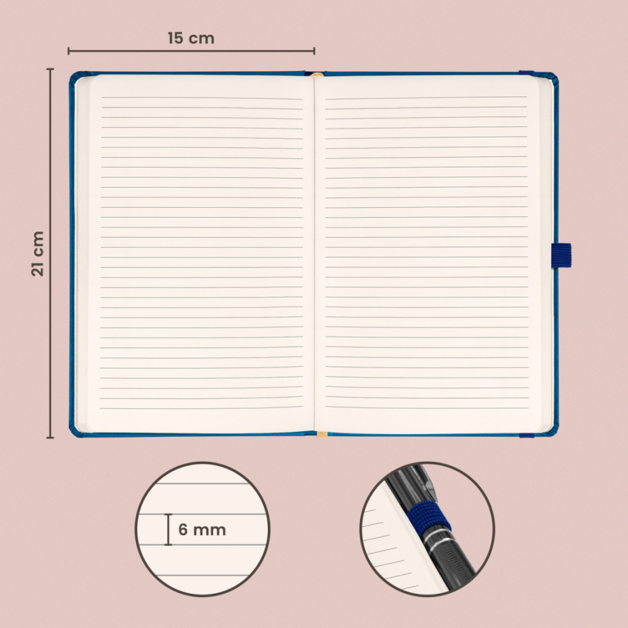 Linajkový notes Aprint 2025 v modrom prevedení. Klasika i elegancia, najžiadanejší povrch, na ktorý možno ľahko vyraziť firemné logá s jemnou štruktúrou.