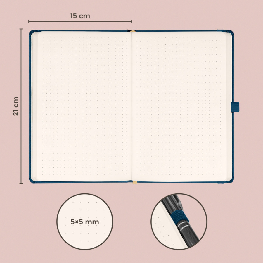 Bodkovaný notes Aprint Neo 2025 v modrom prevedení. Klasika i elegancia, najžiadanejší povrch, na ktorý je možnosť vyraziť firemné logá s jemnou štruktúrou.