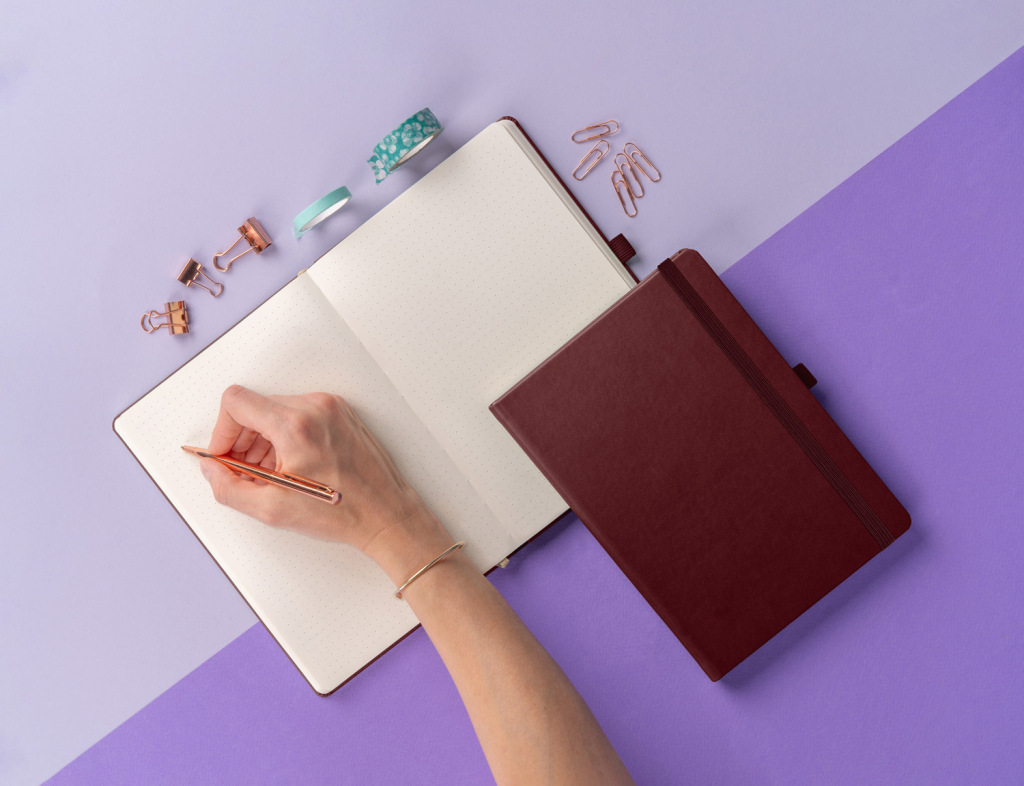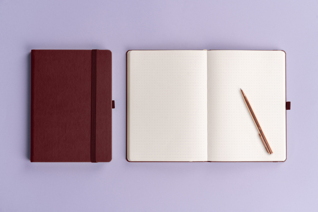 Bodkovaný notes Aprint Neo 2025 vo vínovom prevedení. Klasika i elegancia, najžiadanejší povrch, na ktorý je možnosť vyraziť firemné logá s jemnou štruktúrou.