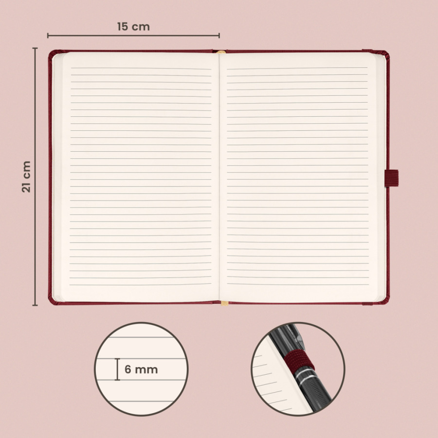 NOTIQUE Notes Balacron, bordový, linajkovaný, 15 x 21 cm
