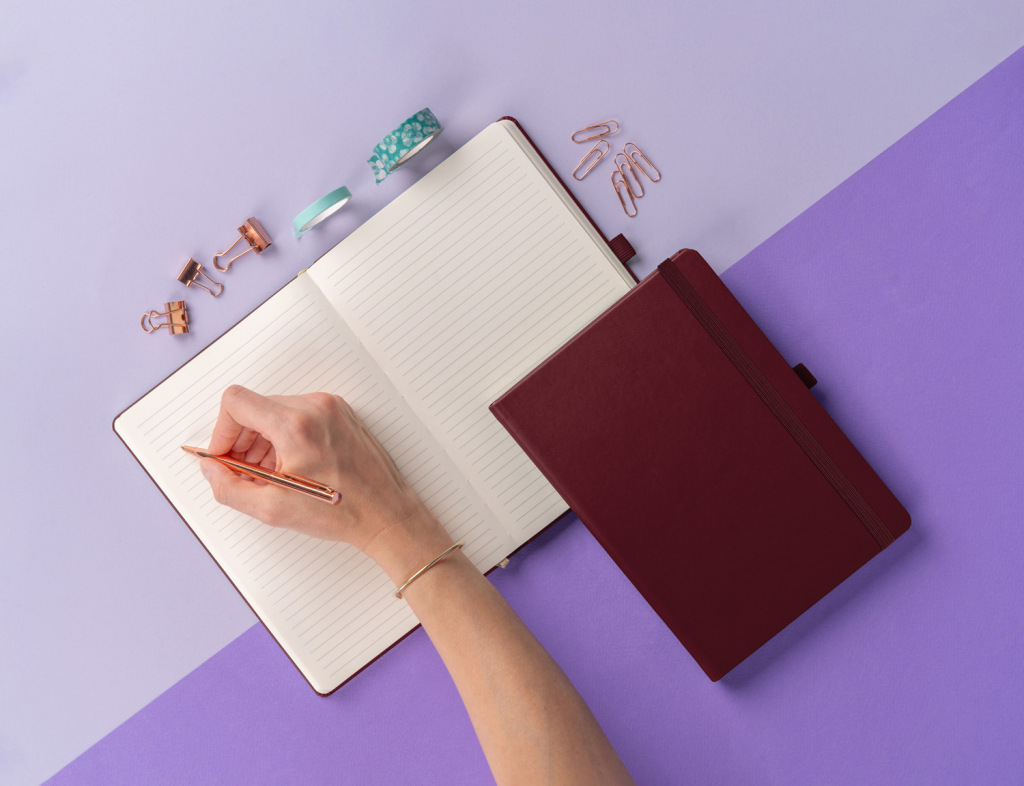 Väzba: tuhá knižná s gumičkou a pútkom na ceruzku