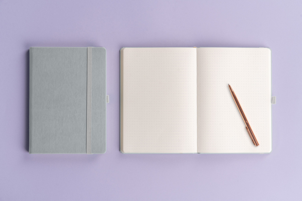 Väzba: tuhá knižná s gumičkou a pútkom na ceruzku