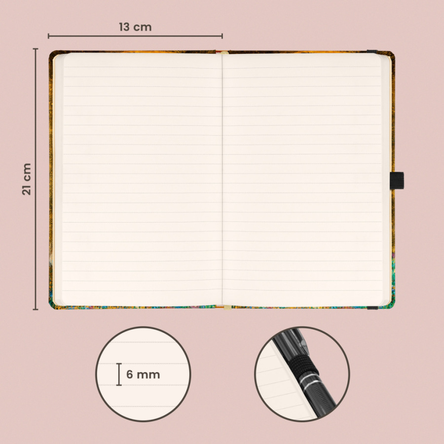 Kvalitný linajkový notes v pevných doskách s uzatváraním na gumičku, pútkom na ceruzku a vnútorným vreckom na drobnosti. Vo vnútri nájdete 172 bodkovaných strán na žltom papieri na zapisovanie všetkých vašich nápadov. Linajkový zápisník môžete použiť ako denník, na zapisovanie hlbokých myšlienok alebo pracovných poznámok.