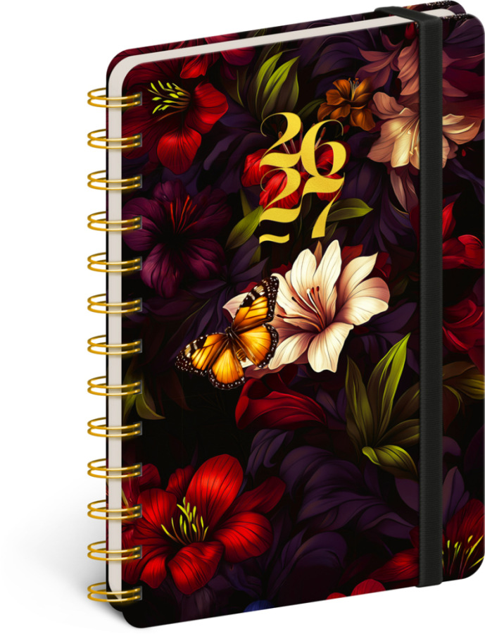 NOTIQUE Špirálový 18-mesačný diár Petito – Rudé kvety 2026/2027, 13 x 18 cm