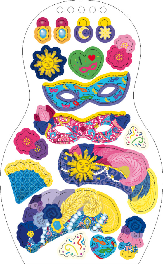 Ďalší titul obľúbenej série, ktorá si našla svojich obdivovateľov v desiatkach krajín z celého sveta, predstavuje malým čitateľom modely, ktoré sa obliekajú na karnevaly konané v rôznych kútoch sveta. Kreatívne maľovanky, plno samolepiek… knižka obsahuje všetko potrebné na vytvorenie nespočetných rób na karneval. A ešte sa k tomu všetkému deti dočítajú o množstve zaujímavých informácií navyše! Kedy a kde sa konajú najznámejšie svetové karnevaly, ako prebieha karnevalová zábava, sprievody a ďalšie akcie spojené s týmito udalosťami? To, a ešte omnoho viac, sa dozviete, ak sa vydáte za poznaním s našimi bábikami. A ku každej knižke dostanete krásny náramok pre šťastie!