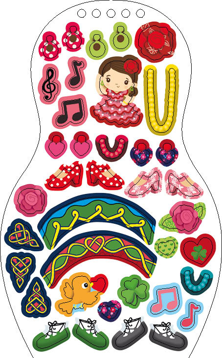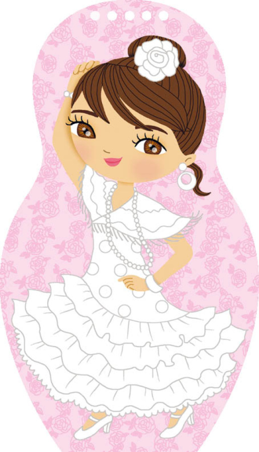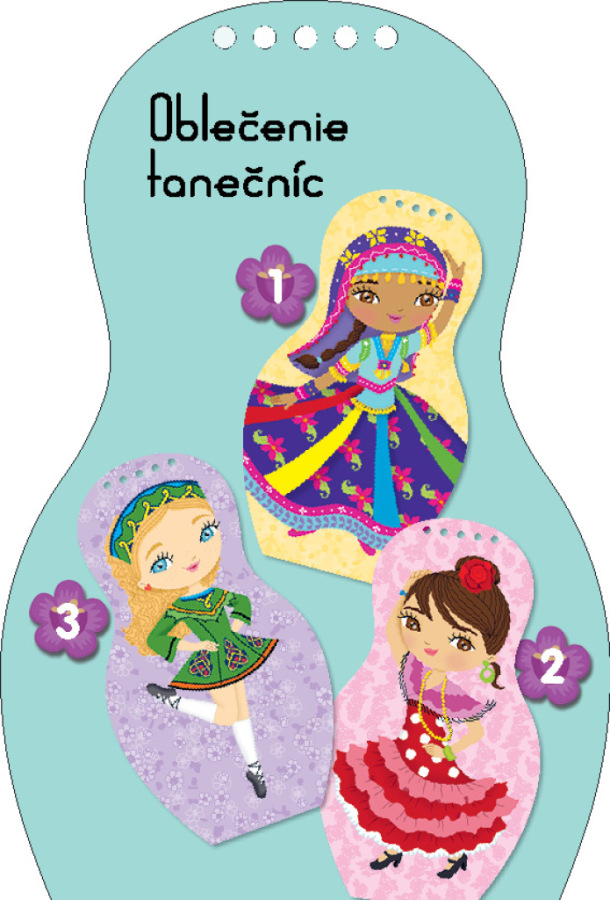 Ďalší titul obľúbenej série, ktorá našla svojich obdivovateľov už v temer tridsiatich krajinách sveta, predstavuje malým čitateľom modely, ktoré si obliekajú tanečnice v rôznych kútoch zemegule. Kreatívne maľovanky, plno samolepiek… knižka obsahuje všetko potrebné na vytvorenie nespočetných rób pre tanečnice. A navyše sa deti dozvedia aj mnoho zaujímavých informácií! Ako a na akú hudbu sa v rôznych krajinách tancuje, aké nástroje pri tanci hrajú, čo si tanečníci a tanečnice obliekajú? To všetko a ešte omnoho viac sa dozviete, ak sa vydáte za poznaním s našimi bábikami. A ku každej knižke dostanete navyše krásny náramok pre šťastie!