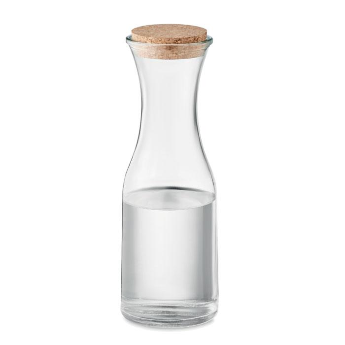 Karafa z recyklovaného skla s korkovým víčkem. Objem: 1 l. Korek je přírodní materiál, vzhledem ke své struktuře a povrchové pórovitosti může být výsledek tisku na stejných předmětech rozdílný.
