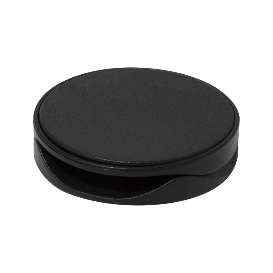 Okrúhly držiak na mobil z recyklovaného ABS so samolepiacou základňou.