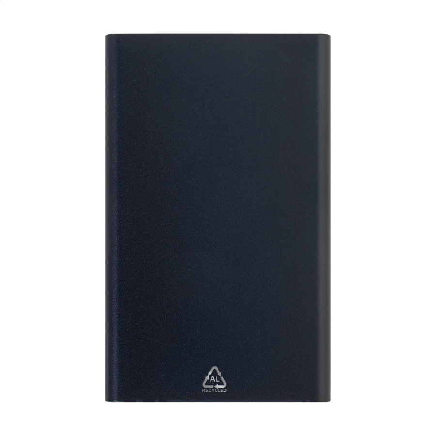 USB power banka v puzdre z recyklovaného hliníka s 4000 mAh batériou. S 1 portom USB a 1 portom USB-C pre nabíjačku. Vstupný port USB-C. Vrátane USB nabíjacieho kábla.