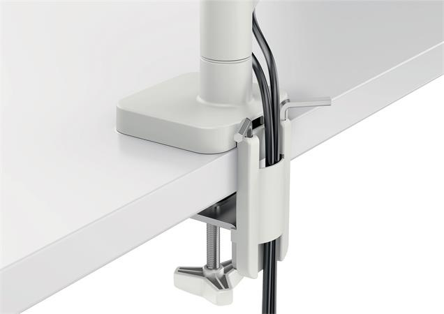 Jednoduché rameno s pružinou na ľahké nastavenie výšky monitora (185–435 mm). Ľahké nastavenie výšky, hĺbky a uhla iba jednou rukou: otáčanie doľava a doprava o +90°/-90°, horizontálne a vertikálne otočenie monitora až do 180°, náklon obrazovky +55°/-55°. Pevná a stabilná konštrukcia na podporu plochého alebo zakriveného monitora s uhlopriečkou 17"–32" a hmotnosťou do 9 kg. Jednoduchá inštalácia pomocou priloženej rýchloupínacej odnímateľnej dosky Vesa® (75 a 100 mm) a silikónovej pogumovanej c-skrutky, ktorá znižuje vibrácie a chráni povrch stola, alebo pomocou priechodky v stole (rozsah hrúbky stola: 10–80 mm). Náradie na montáž a nastavenie je súčasťou balenia. Systém vedenia káblov zabezpečuje poriadok v kábloch monitora a tým aj lepšie usporiadanie pracovného priestoru. Certifikát IGR a TÜV. Rozmery: 550 x 110 x 520 mm. Hmotnosť: 2,07 kg