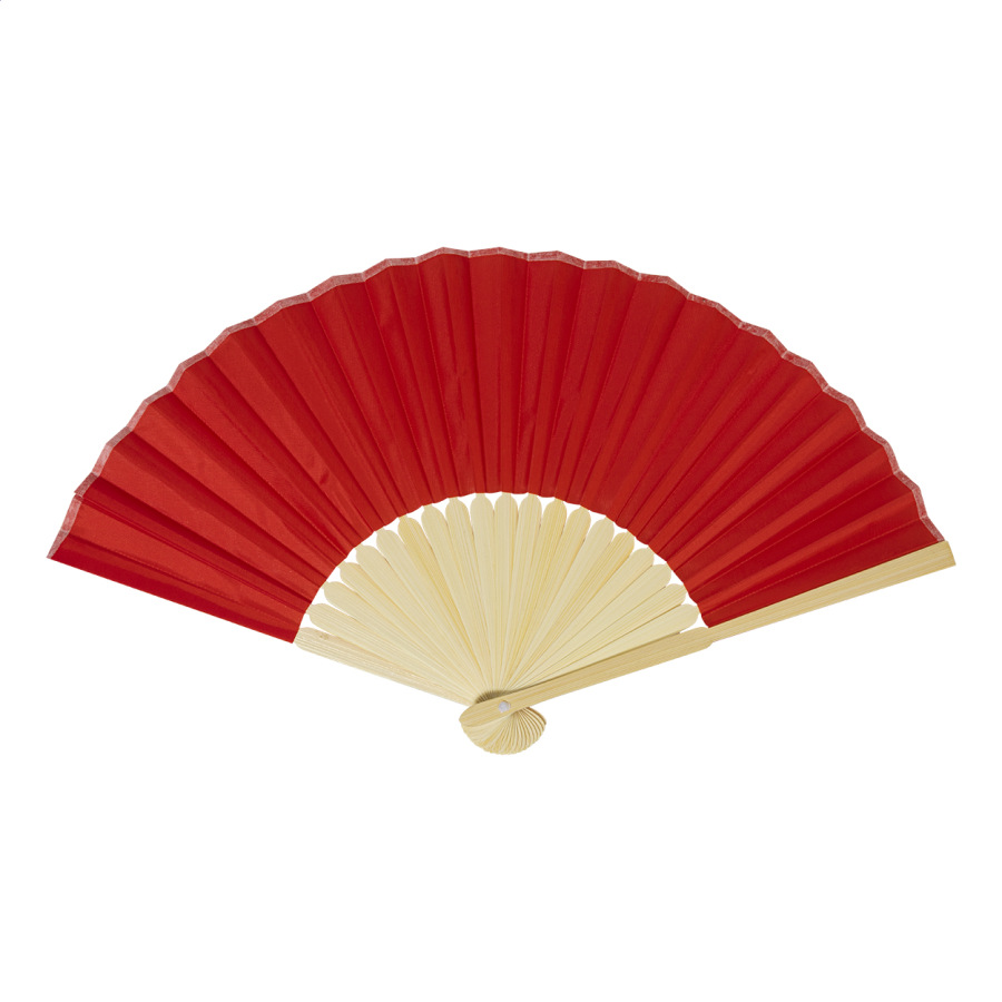 Vejár z RPET polyesteru s bambusovými rebrami.