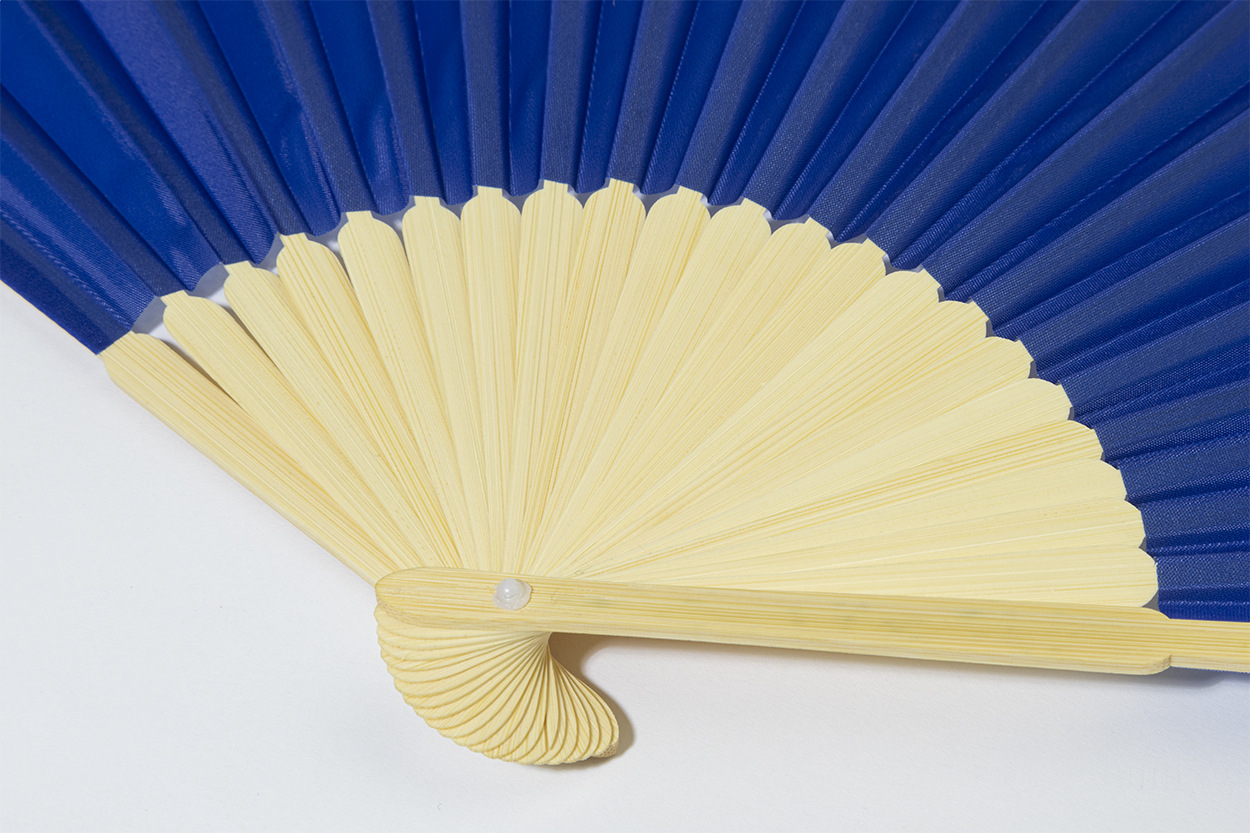 Vejár z RPET polyesteru s bambusovými rebrami.