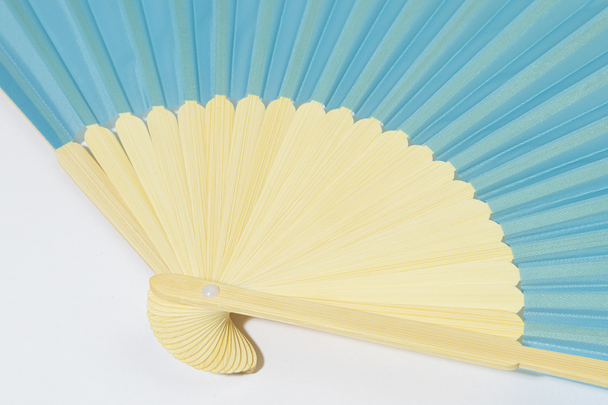 Vejár z RPET polyesteru s bambusovými rebrami.