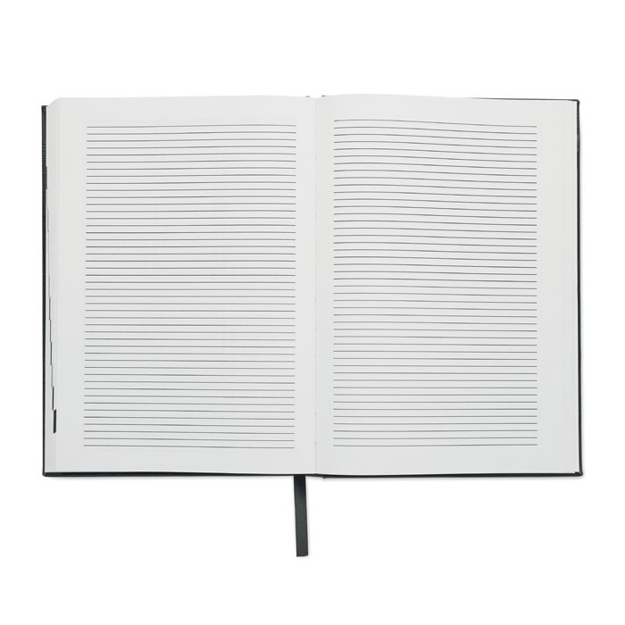 Věčný diář A5 s deskami ze 60 % z recyklovaného polyesteru a 40 % z PU. 416 univerzálních stran z recyklovaného 70g papíru (208 listů). S ladící barevnou polyesterovou záložkou.
