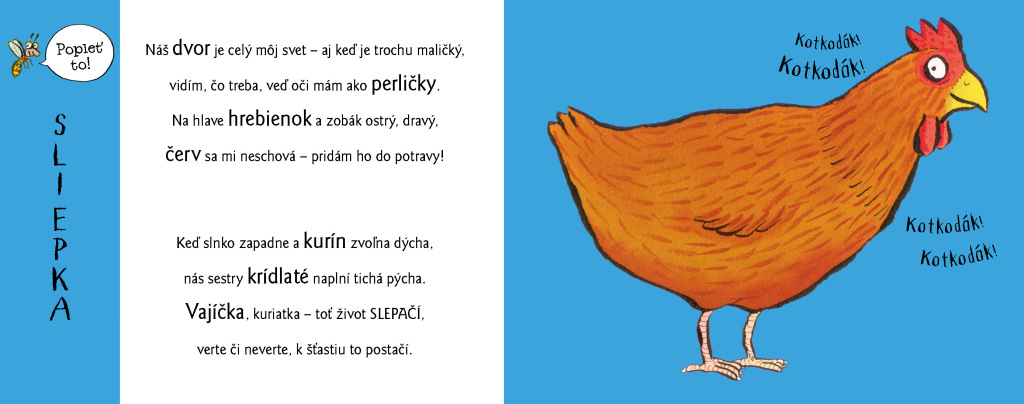 Rýmovaná knižka najprv predstaví známe zvieratká, ktoré žijú na našom dvore – a potom len príde tá správna zábava! Zo skutočných zvieratiek totiž môžete vytvárať veľké množstvo zvieratiek popletených! Ich nové neobyčajné vlastnosti a podivné mená budú zabávať nielen malých čitateľov, ale s chuťou sa na nich zasmejú aj tí dospelí. Verili by ste, že do jednej malej knižky sa vojde o pár desiatok viac ako stovka rôznych tvorov? Veselé ilustrácie medzinárodne oceňovaného autora sú doplnené slovenskými básničkami.